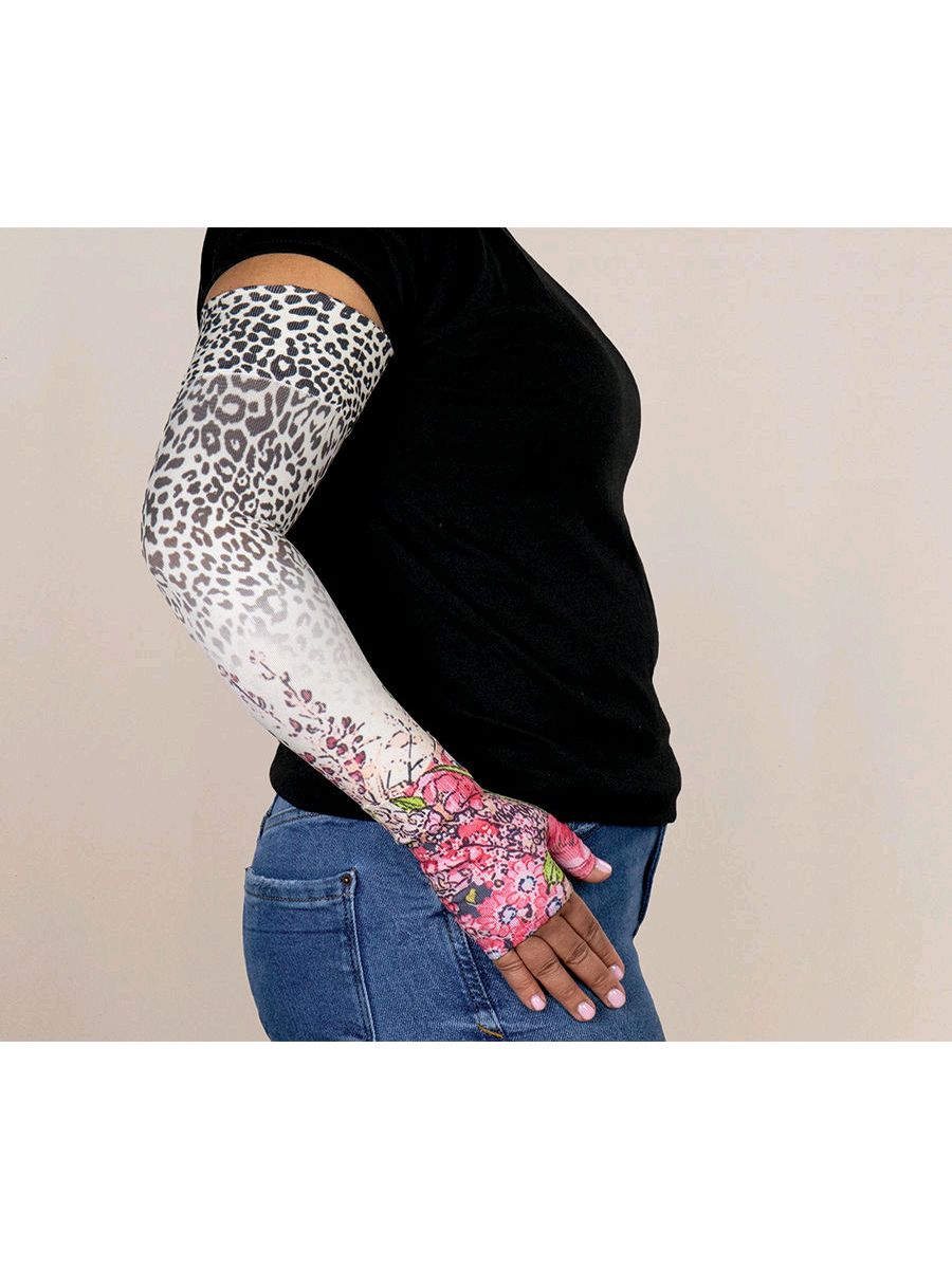 Gorgeous, Lymphoedema Sleeve and matching Gauntlet with a difference! Starts as an animal print and fades to pretty, flowers.