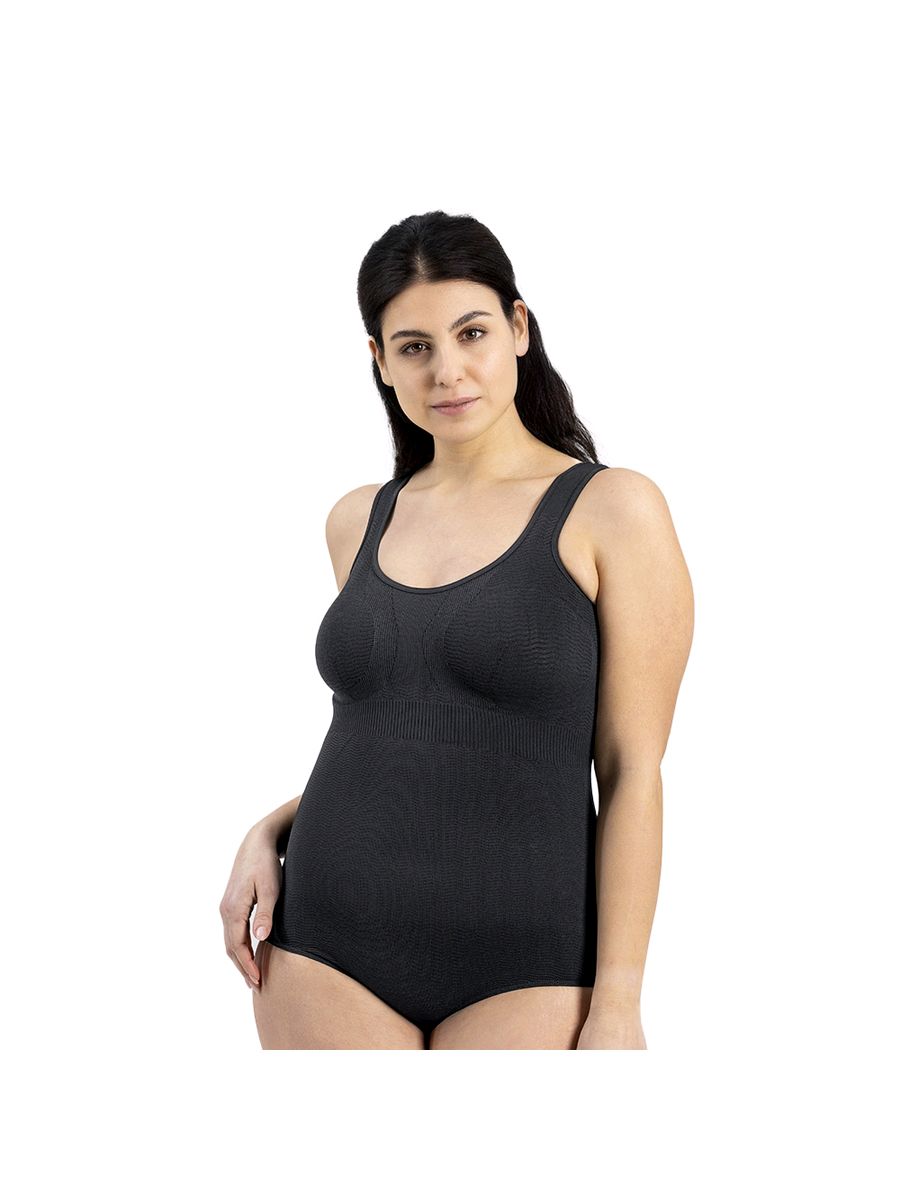 The micro-massaging fabric allows the drainage of fluids in breast, armpit, abdomen and back for a smoother, firmer skin. The bodysuit is easy to be worn and, thanks to its wrapping shape, fits comfortably on the breast and chest with positive benefits on posture. It has no seams in the bra reinforced areas, offering highest comfort during its postoperative use in case of breast enlargement and reduction.