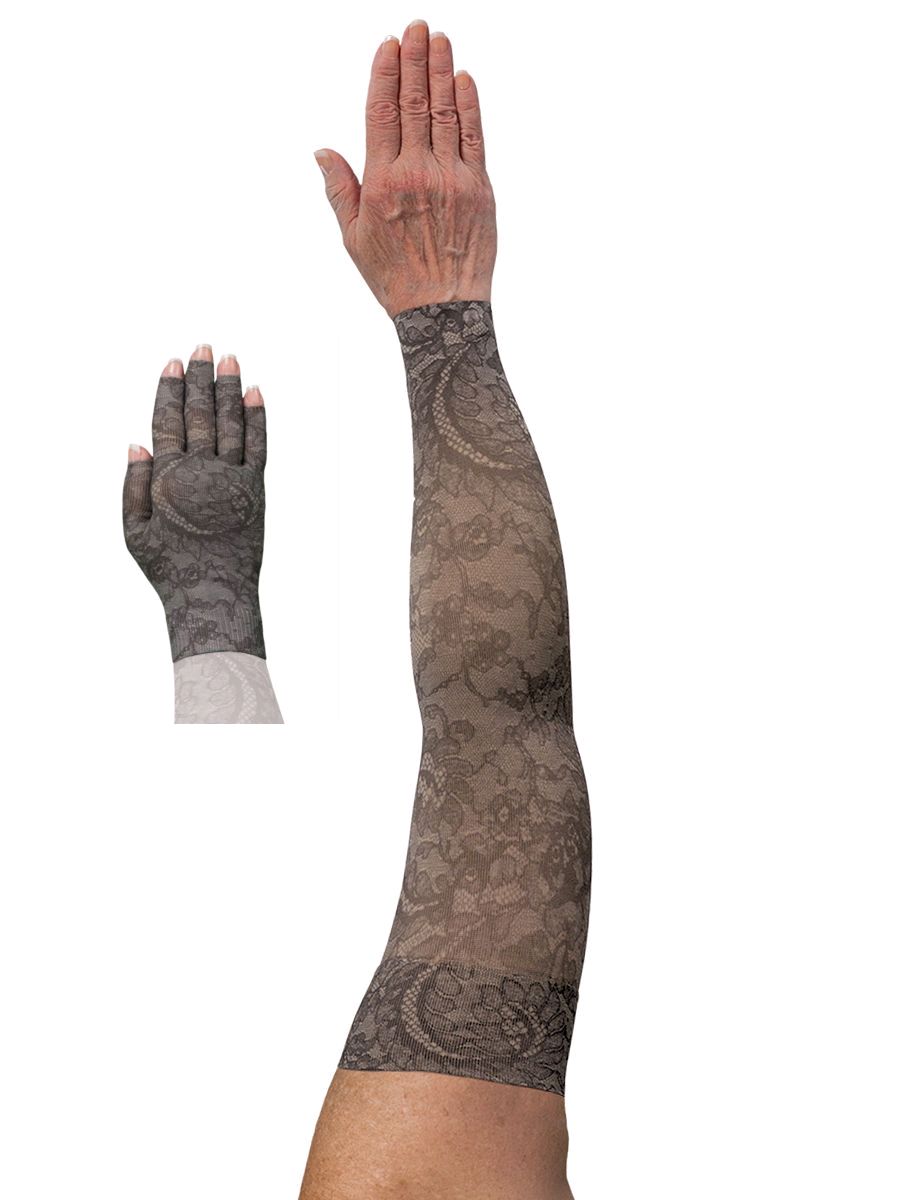 Lymphoedema armsleeve and matching glove in alluring, lace, pattern design. Attractive compression to help you feel your best and look amazing. Regain your confidence once again.